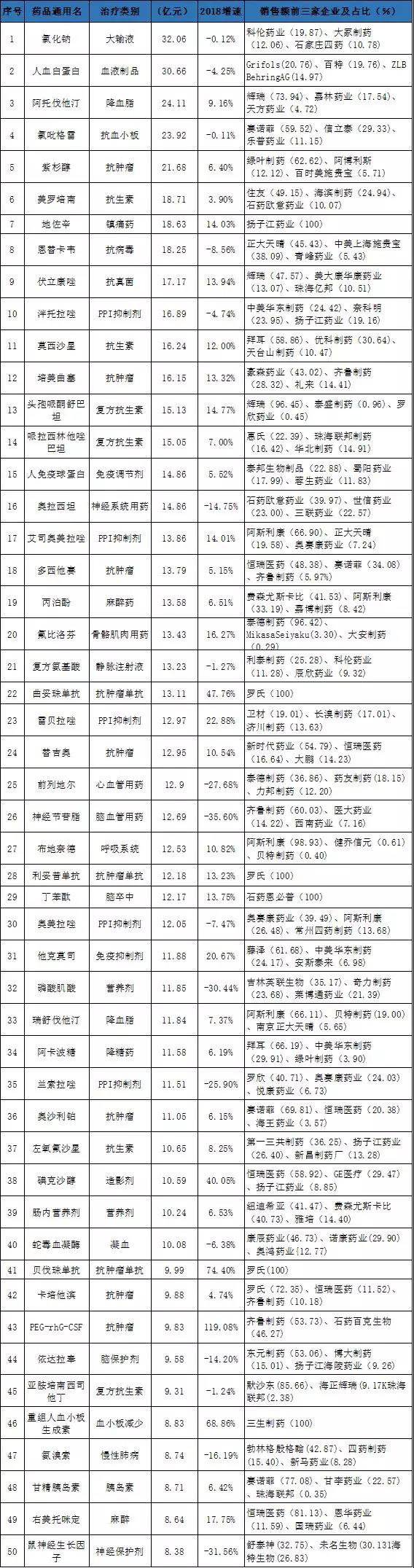 這(zhè)50個(gè)藥醫(yī)院最暢銷(£♠附名單、銷售、藥企排名)